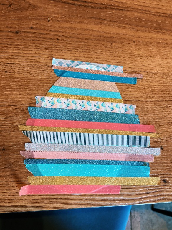 N’hésitez pas à bien faire dépasser le masking tape sur les bords, on coupera tout après :